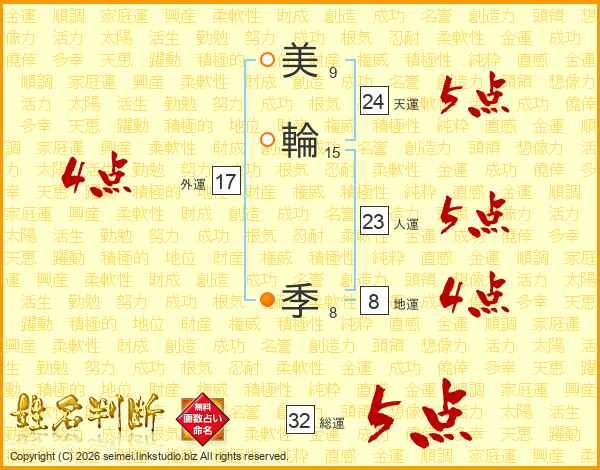 美(9画)輪(15画)  季(8画)