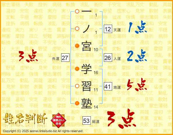 一ノ宮学習塾さんの総運は53画の3点!