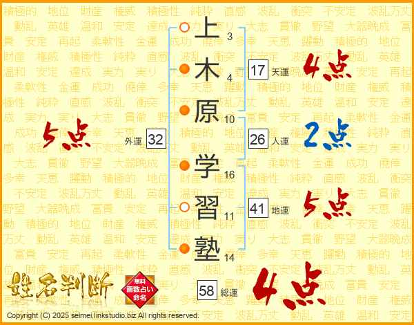 上木原学習塾さんの総運は58画の4点!