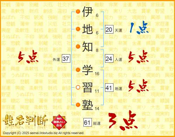 伊地知学習塾さんの総運は61画の3点!