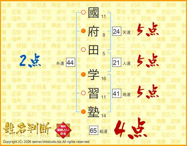 國(11画)府(8画)田(5画) 学(16画)習(11画)塾(14画)