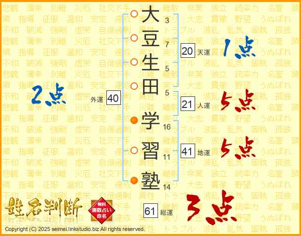 大(3画)豆(7画)生(5画)田(5画) 学(16画)習(11画)塾(14画)