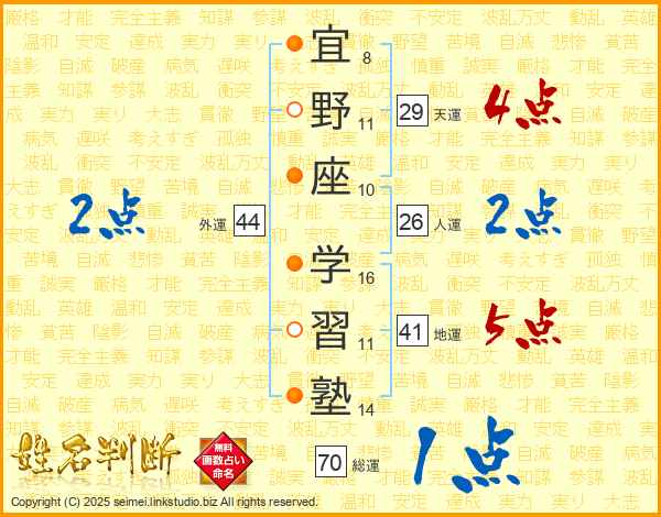 宜野座学習塾さんの人運は26画の2点!