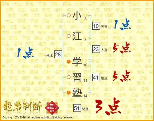 小江学習塾さんの総運は51画の3点!