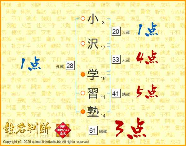 小沢学習塾さんの総運は61画の3点!