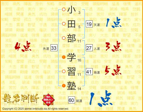 小(3画)田(5画)部(11画) 学(16画)習(11画)塾(14画)