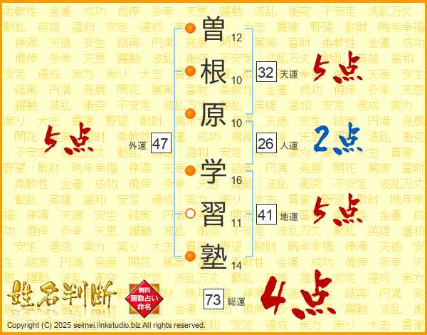 曽(12画)根(10画)原(10画) 学(16画)習(11画)塾(14画)