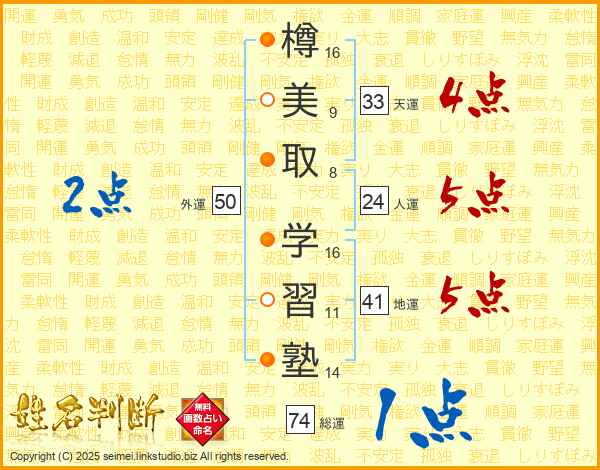 樽美取学習塾さんの総運は74画の1点!