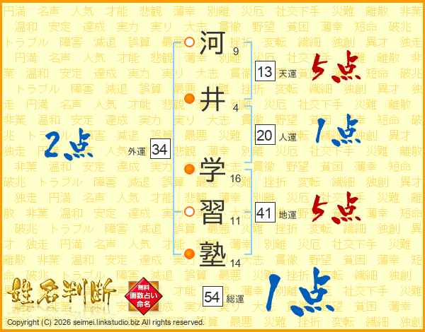 河(9画)井(4画) 学(16画)習(11画)塾(14画)