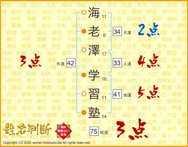 海(11画)老(6画)澤(17画) 学(16画)習(11画)塾(14画)