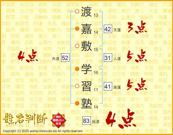 渡嘉敷学習塾さんの総運は83画の4点!