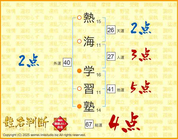 熱海学習塾さんの総運は67画の4点!