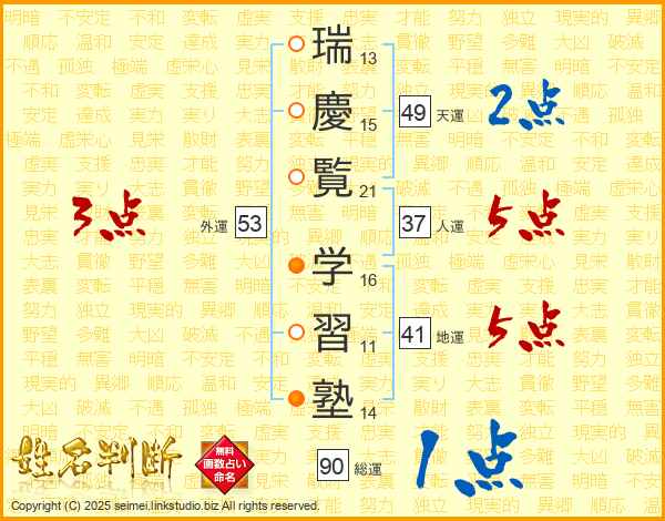 瑞慶覧学習塾さんの人運は37画の5点!