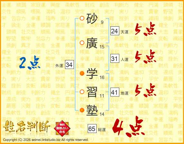 砂廣学習塾さんの総運は65画の4点!