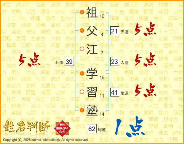祖父江学習塾さんの天運は21画の5点!