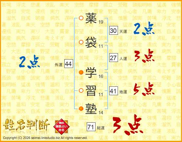 薬袋学習塾さんの総運は71画の3点!