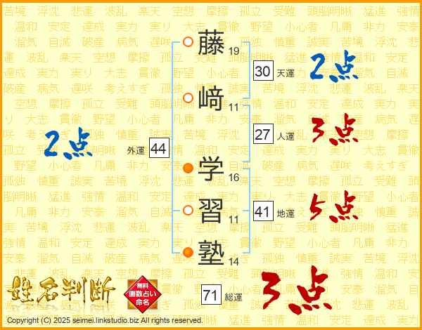 藤(19画)﨑(11画) 学(16画)習(11画)塾(14画)