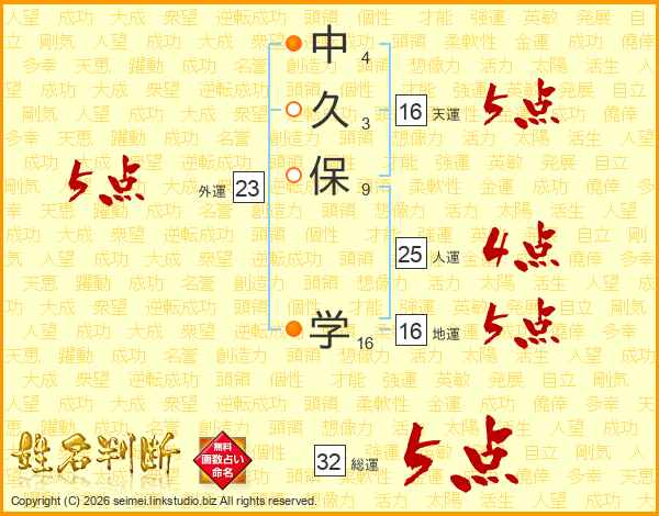 中久保学さんの総運は32画の5点!