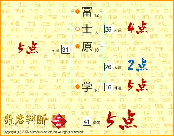 冨士原学さんの天運は25画の4点!