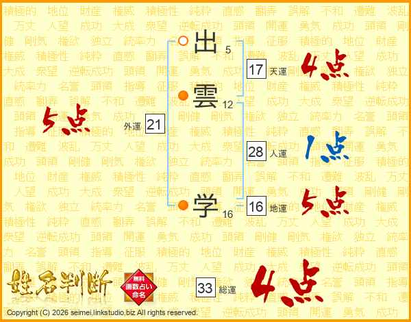 出雲学さんの総運は33画の4点!
