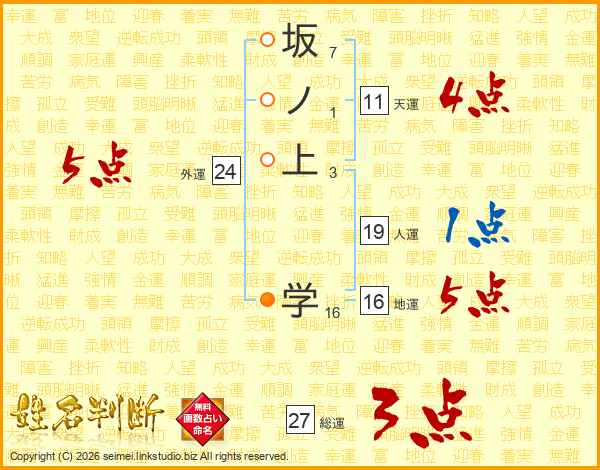 坂ノ上学さんの天運は11画の4点!