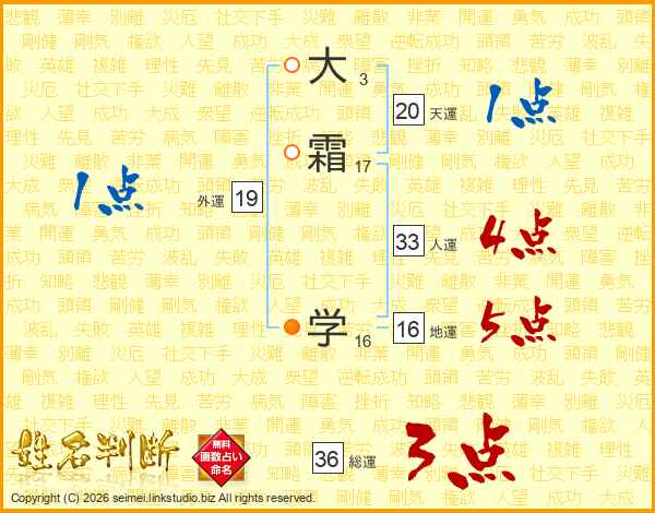 大霜学さんの総運は36画の3点!