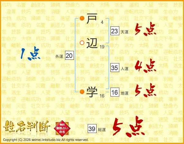 戸辺学さんの総運は39画の5点!