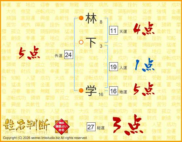 林下学さんの天運は11画の4点!