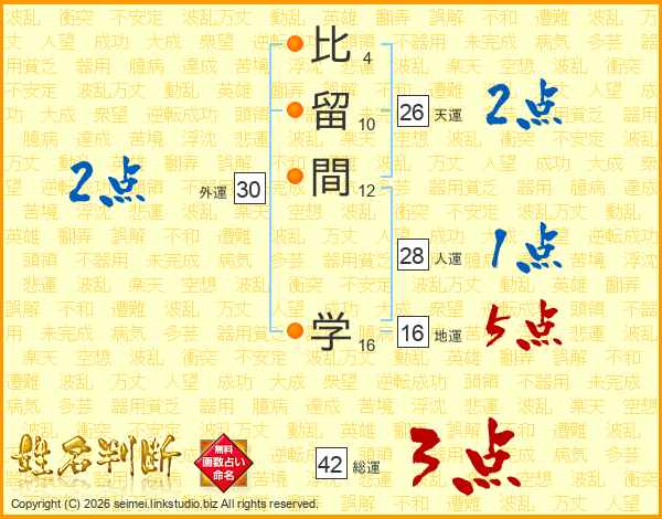 比留間学さんの天運は26画の2点!