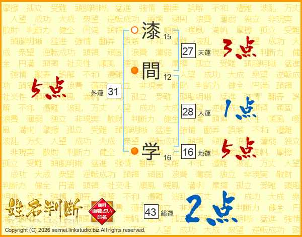 漆間学さんの総運は43画の2点!