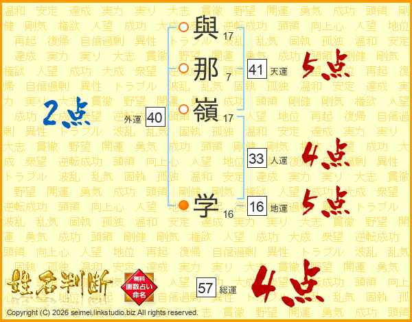 與那嶺学さんの天運は41画の5点!