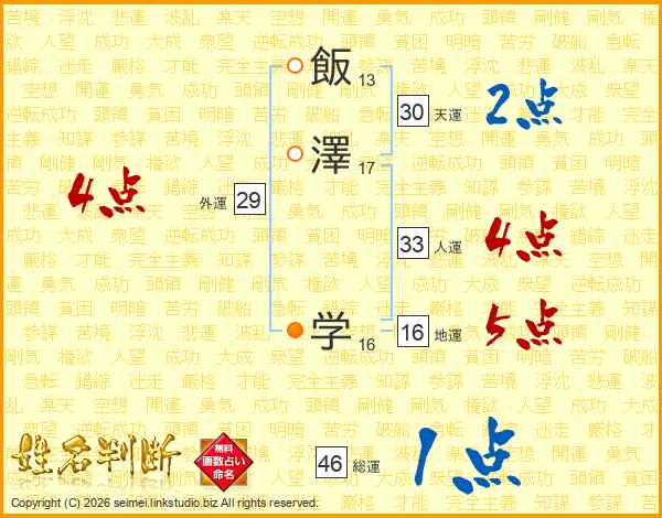 飯澤学さんの人運は33画の4点!