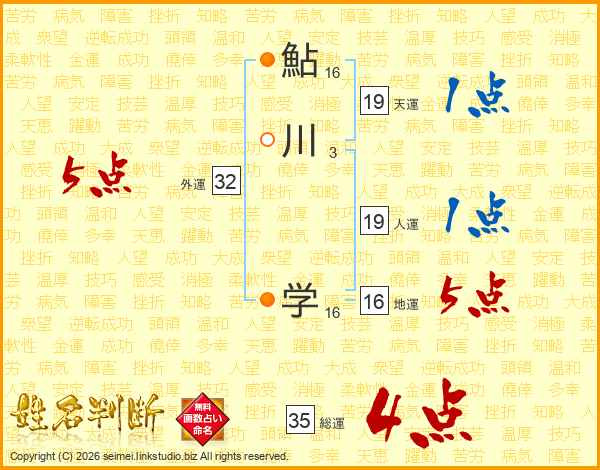 鮎川学さんの総運は35画の4点!