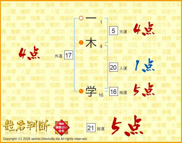一木学さんの総運は21画の5点!