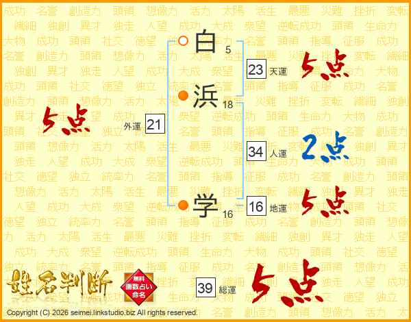 白浜学さんの総運は39画の5点!