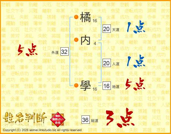 橘内學さんの人運は20画の1点!