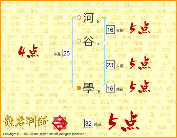 河谷學さんの総運は32画の5点!