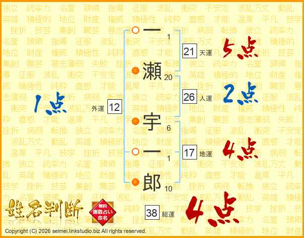 一瀬宇一郎さんの総運は38画の4点!