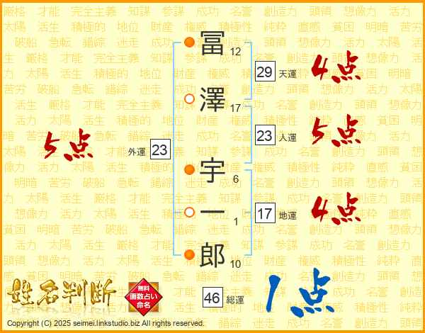 冨澤宇一郎さんの天運は29画の4点!