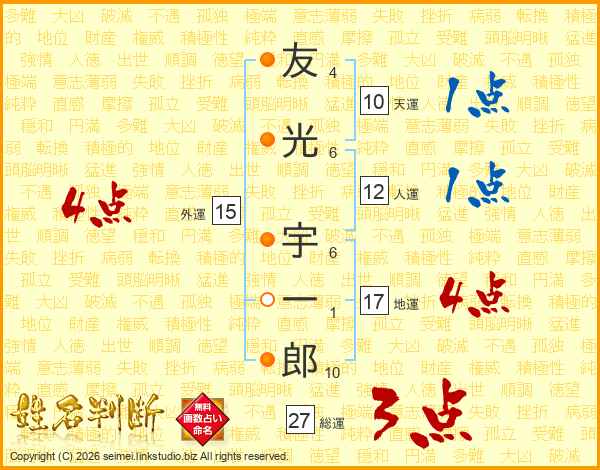友(4画)光(6画) 宇(6画)一(1画)郎(10画)