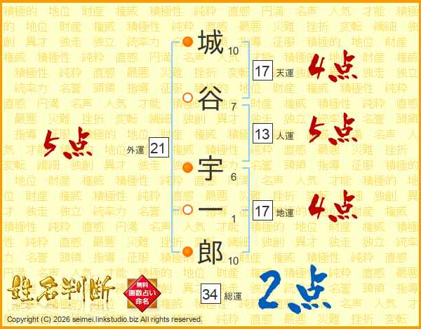 城谷宇一郎さんの天運は17画の4点!