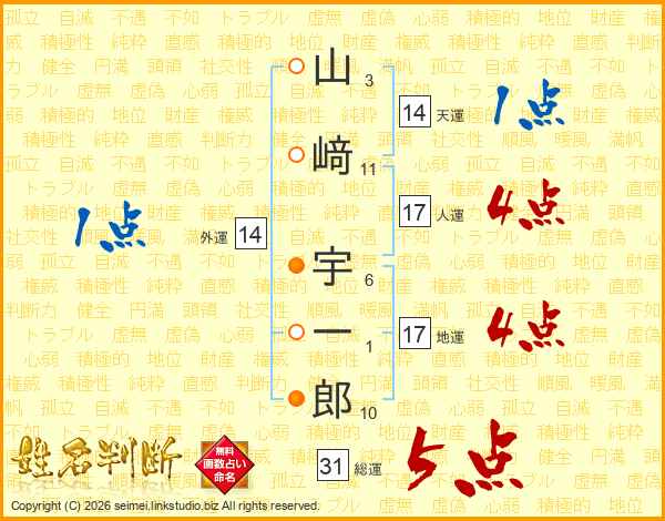 山﨑宇一郎さんの総運は31画の5点!