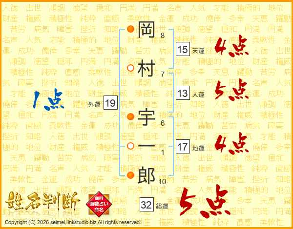 岡村宇一郎さんの総運は32画の5点!