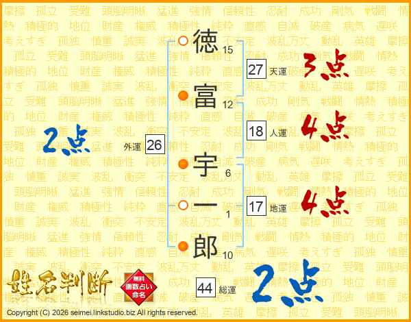 徳富宇一郎さんの総運は44画の2点!