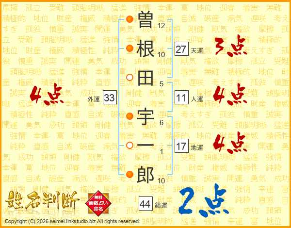 曽根田宇一郎さんの天運は27画の3点!