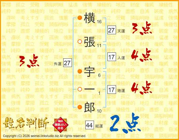 横張宇一郎さんの人運は17画の4点!