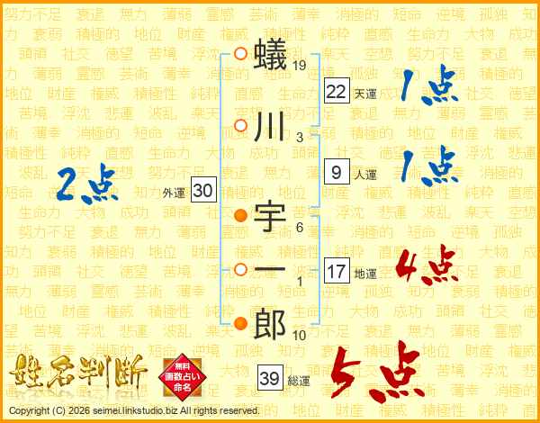 蟻川宇一郎さんの総運は39画の5点!