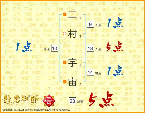 二村宇宙さんの総運は23画の5点!