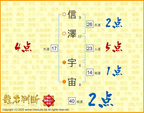 信澤宇宙さんの総運は40画の2点!
