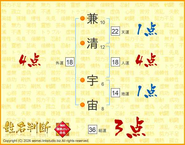 兼清宇宙さんの外運は18画の4点!